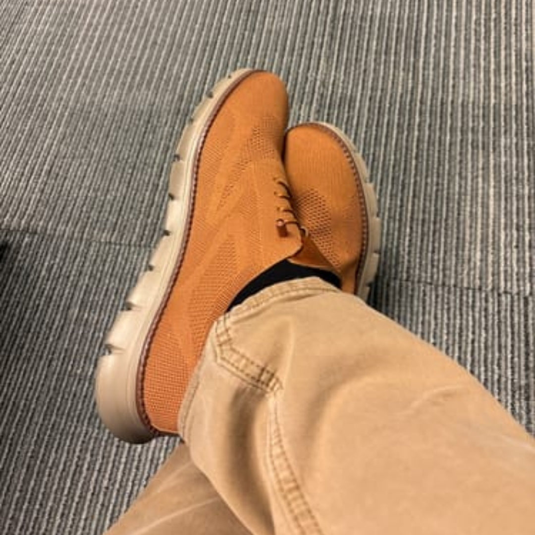 The most comfortable dress shoes you'll ever wear. Made with breathable knit fabric, a supportive orthopedic toe box, and a dynamic, flexible sole.